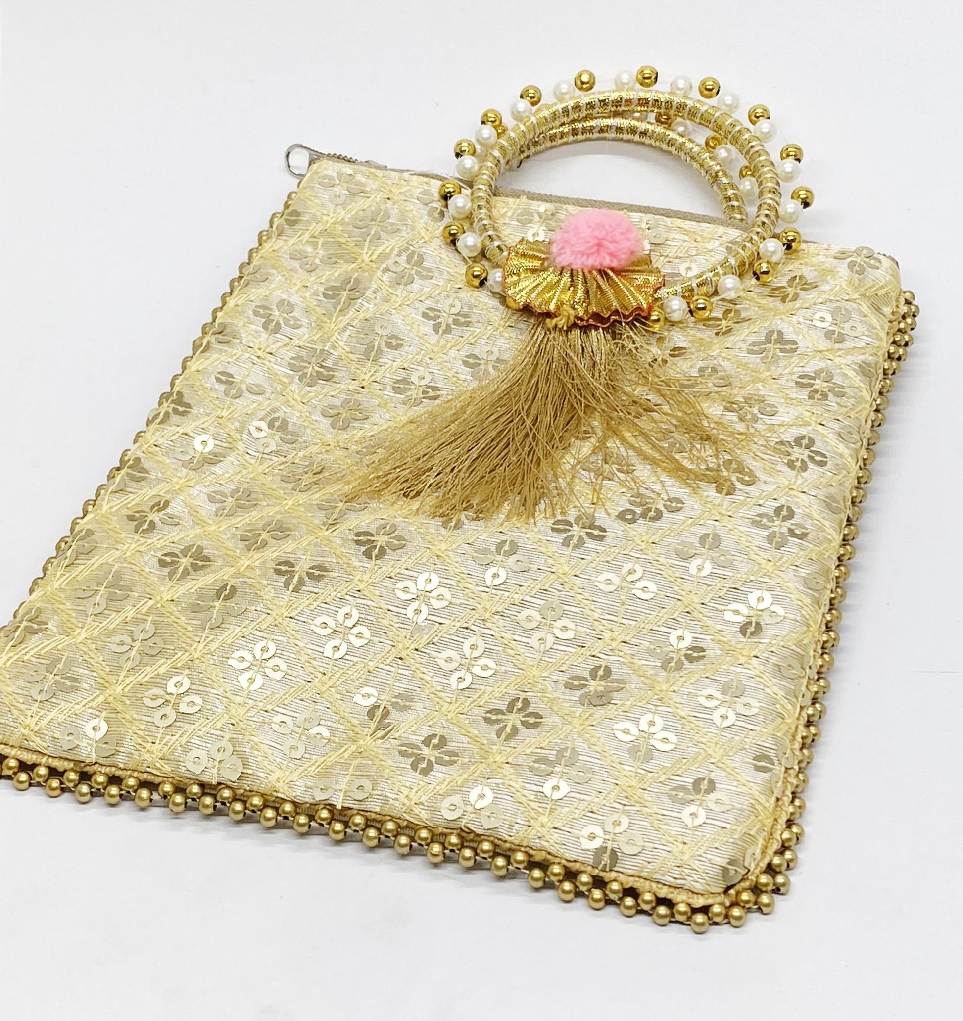 Fancy Potli Bag - 8 x 6 inch - 5 Pieces , Golden, Design -10