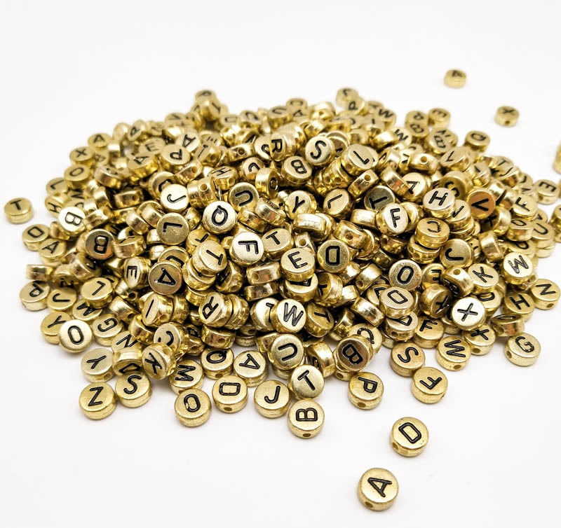 Golden Round alphabets Beads- 25 gm , design -2