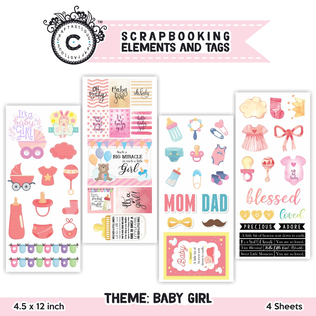 Scrapbooking Elements and Tag -Baby Girl