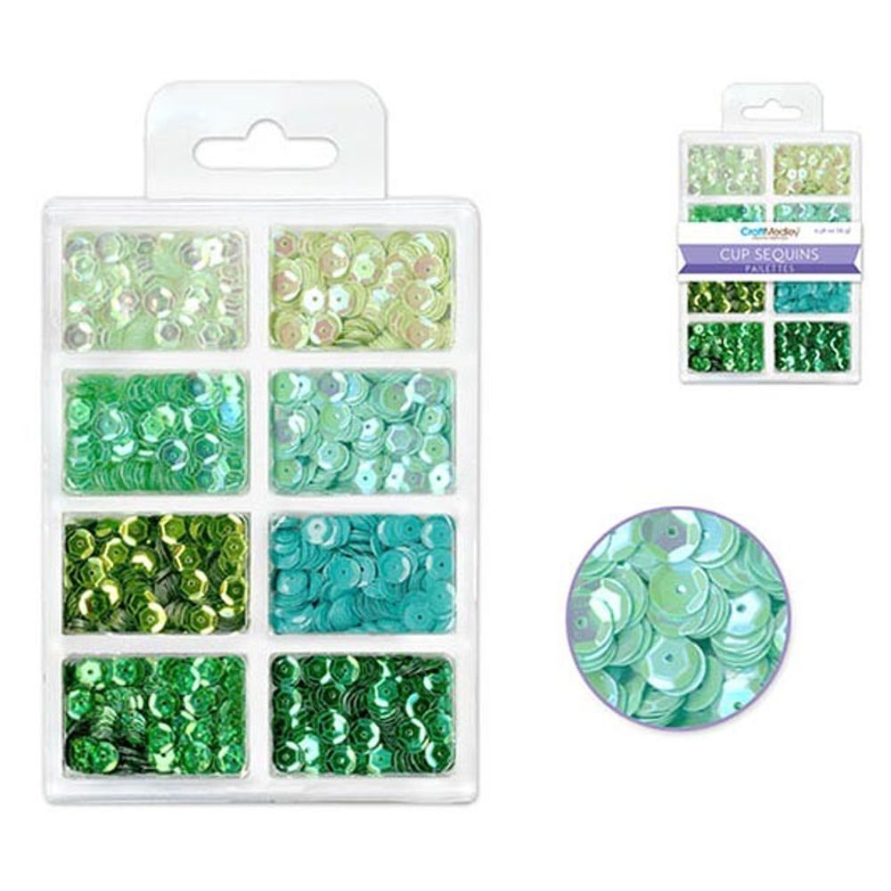 Craft Medley: 6mm Cup Sequins 25g Plastic Case 8-comp